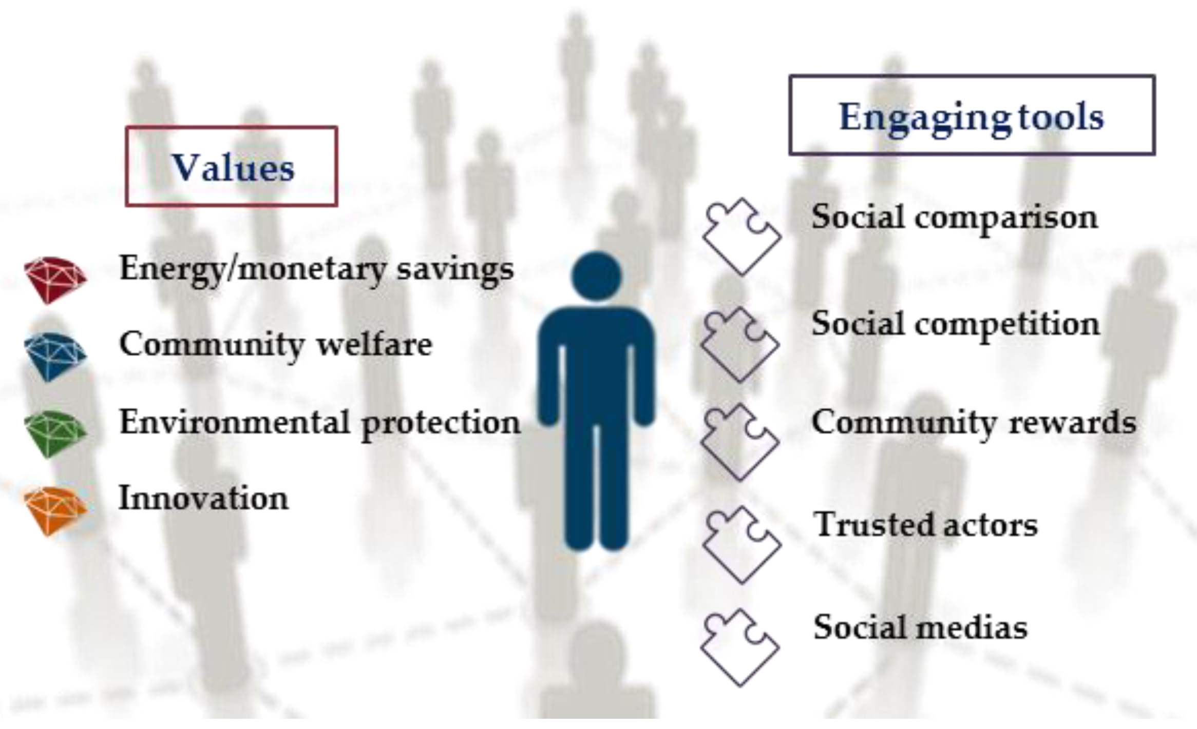 | Community based social marketing | Identifying barriers to adoption; reinforcing community dynamics; exploiting potential for behavioural change in a community context; informing on the progress of the project | Community events (e.g., green picnics, winter fairs); Living Labs |