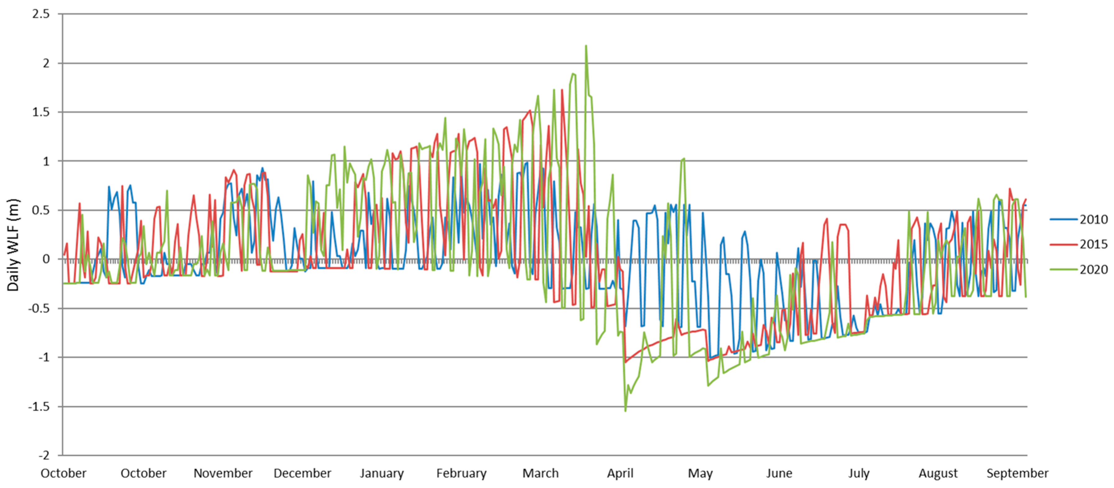 2.3. Seasonal Water Levels in Large and Small Alpine Reservoirs