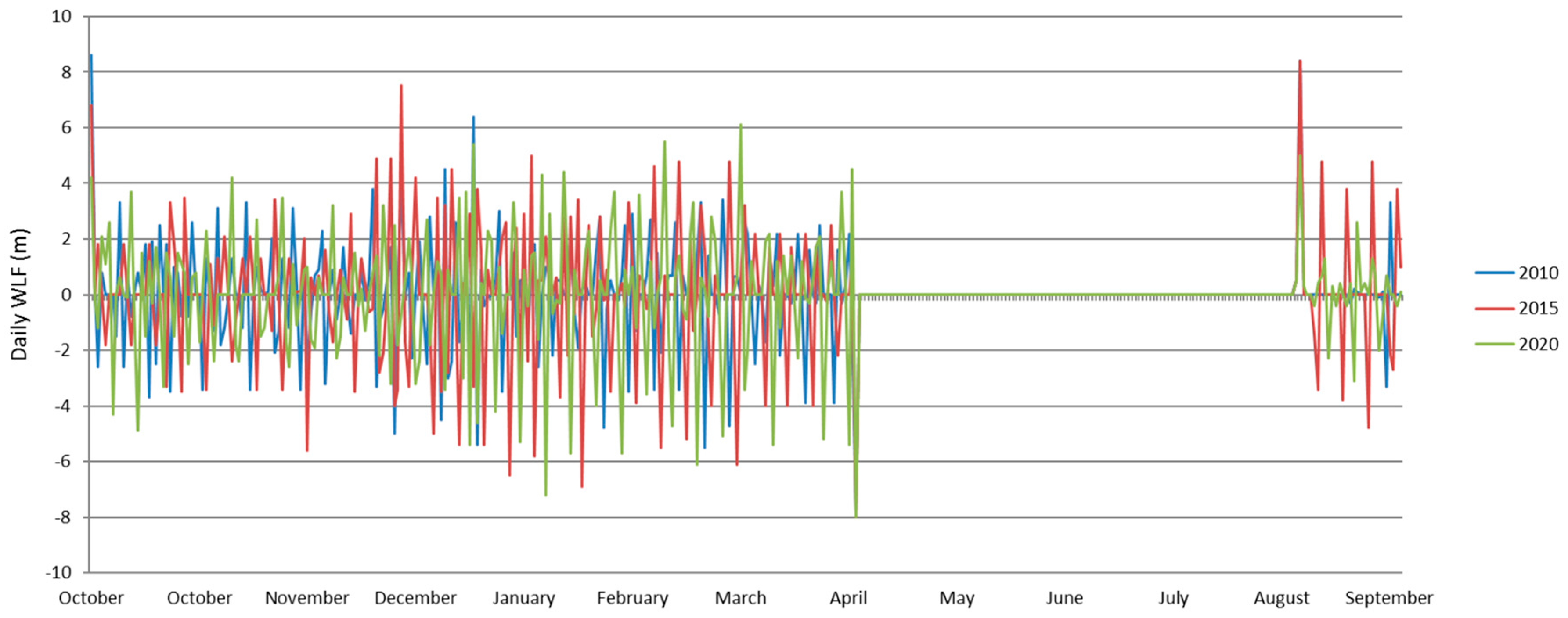 - García Molinos, J.; Viana, M.; Brennan, M.; Donohue, I. Importance of long-term cycles for predicting water level dynamics in natural lakes. PLoS ONE 2015, 10, e0119253. [Google Scholar] [CrossRef] [PubMed]