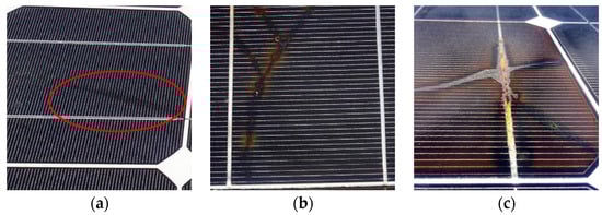 Figure 1 shows examples of several of the described defects. The following subsections describe briefly all found PV module potential failures.