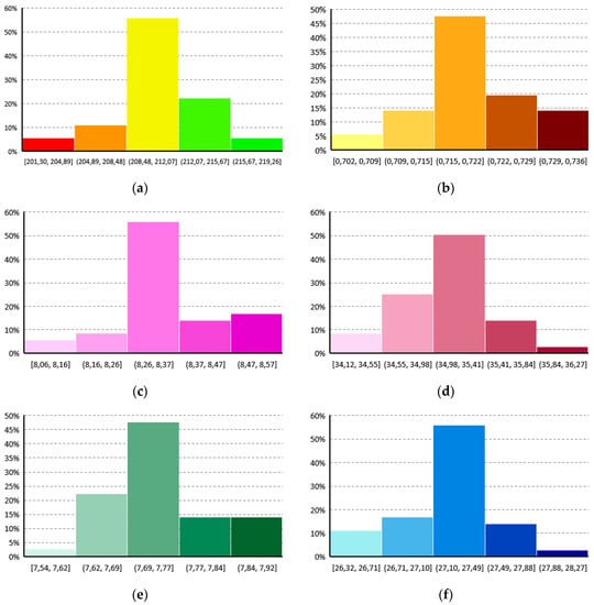 Figure 23c–f shows the histograms for Isc, Voc, Impp, and Vmpp, respectively. Dispersion of these parameters is too low and no high differences with the nominal values are observed.