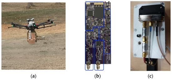 Picture of UAV GPR System 11: UAV platform (a); transceiver module (b); cable interconnections (c). Courtesy of University of Maribor, Maribor, Slovenia.