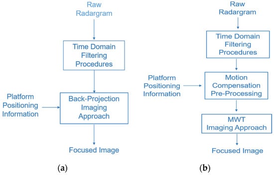 Standard processing refers to classical filtering procedures aimed at mitigating clutter, removing noise interferences, compensating motion errors, and signal attenuation. Conversely, advanced imaging strategies aim to provide a clear focused image of the inspected area.