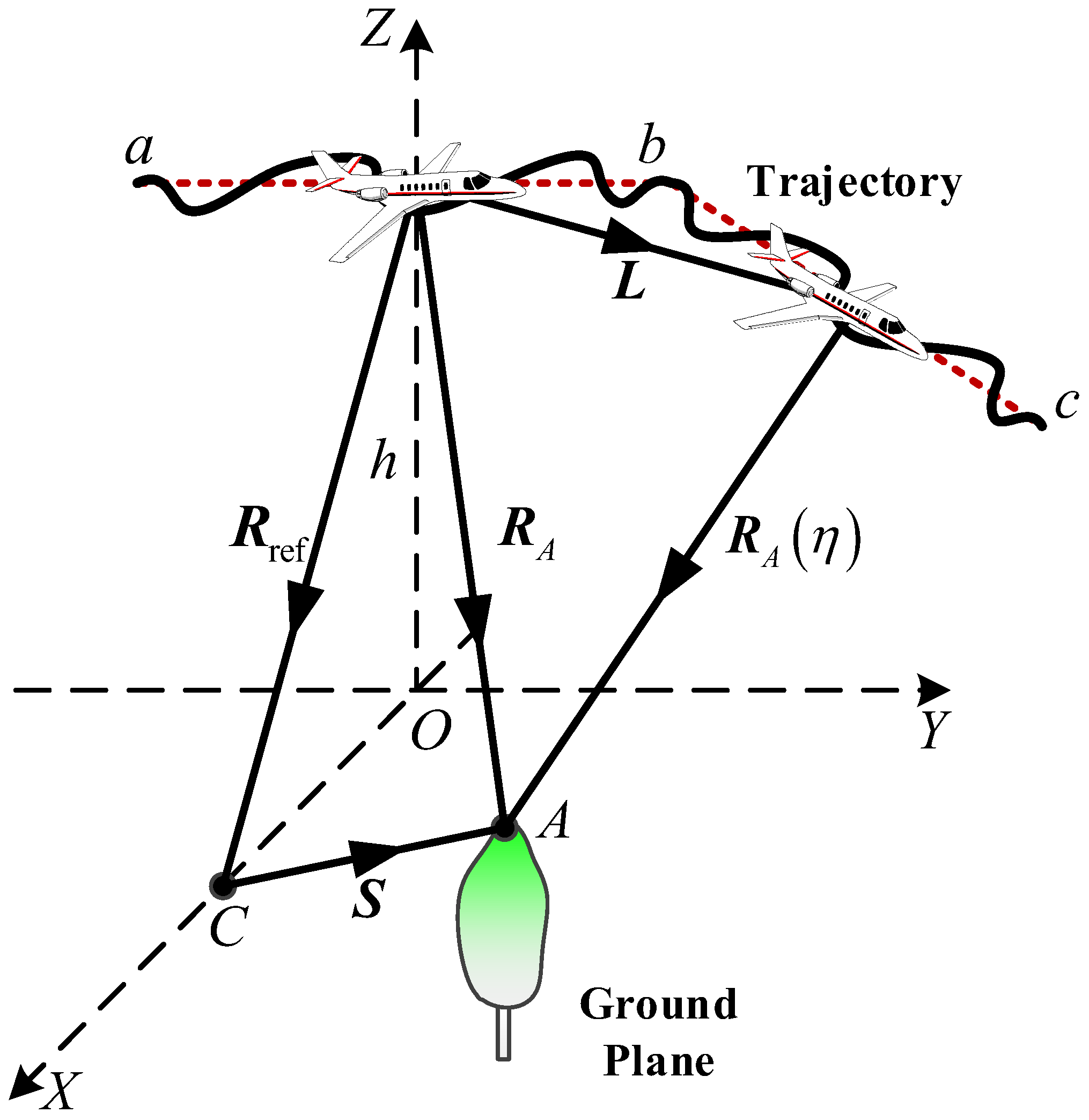 - Tang, S.; Zhang, L.; Guo, P.; Liu, G.; Sun, G. Acceleration model analyses and imaging algorithm for highly squinted airborne spotlight-mode SAR with maneuvers. IEEE J. Sel. Top. Appl. Earth Obs. Remote Sens. 2015, 8, 1120–1131. [Google Scholar] [CrossRef]