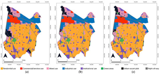 In 2018, it was observed that residential use remained predominant, however, respectively followed by mixed, industrial, and institutional uses. The increase in mixed use was mainly due to the conversion from strictly residential use to this class. In fact, this type of change (residential to mixed use) presented the highest transition rate. Another frequent transition between 2006 and 2018 was commercial/services to mixed use. Two further changes were also important: the first one, from vacant plot to mixed use was associated with high-rise multifamily buildings and office towers, and the second one, from vacant plot to high-rise exclusively residential buildings.