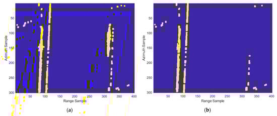 Performing CFAR detection on the similarity calculated by Equation (14) can mark the pixel positions occupied by strong scatterers to achieve clutter suppression of strong scatterers.