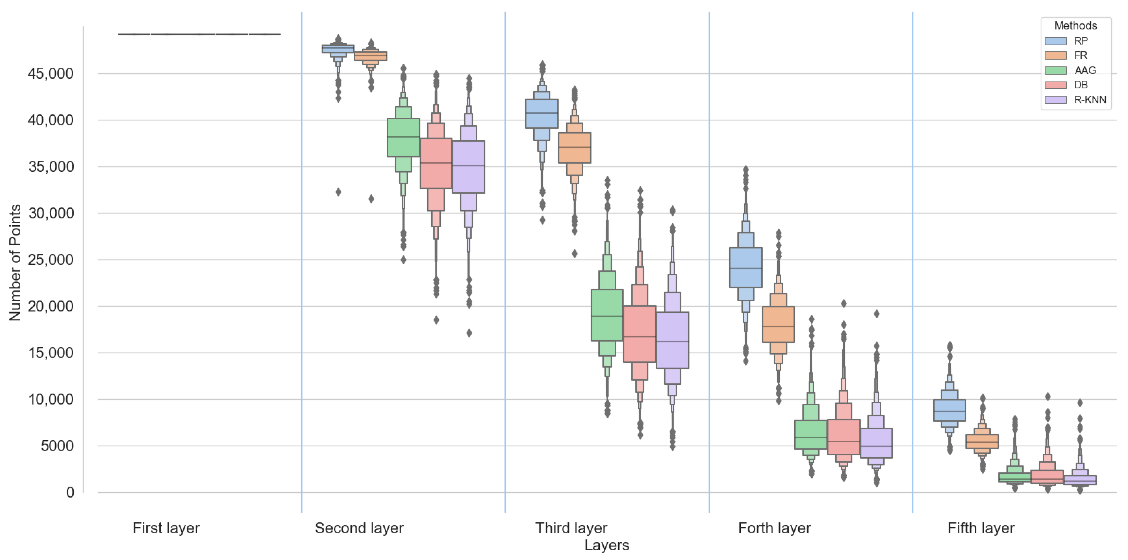 Figure 7. Number of points per layer of KPConv for the proposed data preparation methods.