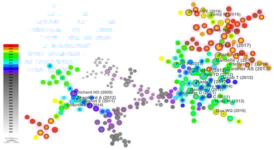 Burst detection can be used to investigate pieces of literature that appear suddenly and with rapidly increasing citation frequency, which usually reflect the frontiers of research in the field. Figure 9 lists the top 25 burst pieces of literature in terms of intensity. Based on the timeline in Figure 9, it is possible to determine when the research frontier appears and disappears, and the timeline can visualize the historical length of bursts of keywords [].