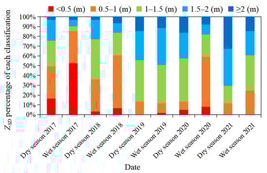 ZSD distribution in the dry and wet seasons from 2017 to 2021.