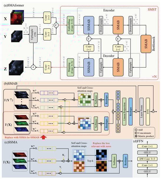 where represents a convolution layer and indicates N SMST modules. We will provide a more detailed explanation of the SMAB and the sparse attention in the SSMAB in the next two sections.