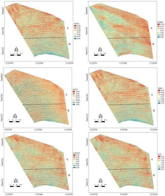 The vegetation indices were presented in Table 1. After processing the orthomosaics, the images were cropped only in the area of interest for the application of vegetation indices.