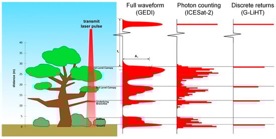 - Dubayah, R.; Blair, J.B.; Goetz, S.; Fatoyinbo, L.; Hansen, M.; Healey, S.; Hofton, M.; Hurtt, G.; Kellner, J.; Luthcke, S.; et al. The Global Ecosystem Dynamics Investigation: High-Resolution Laser Ranging of the Earth’s Forests and Topography. Sci. Remote Sens. 2020, 1, 100002. [Google Scholar] [CrossRef]