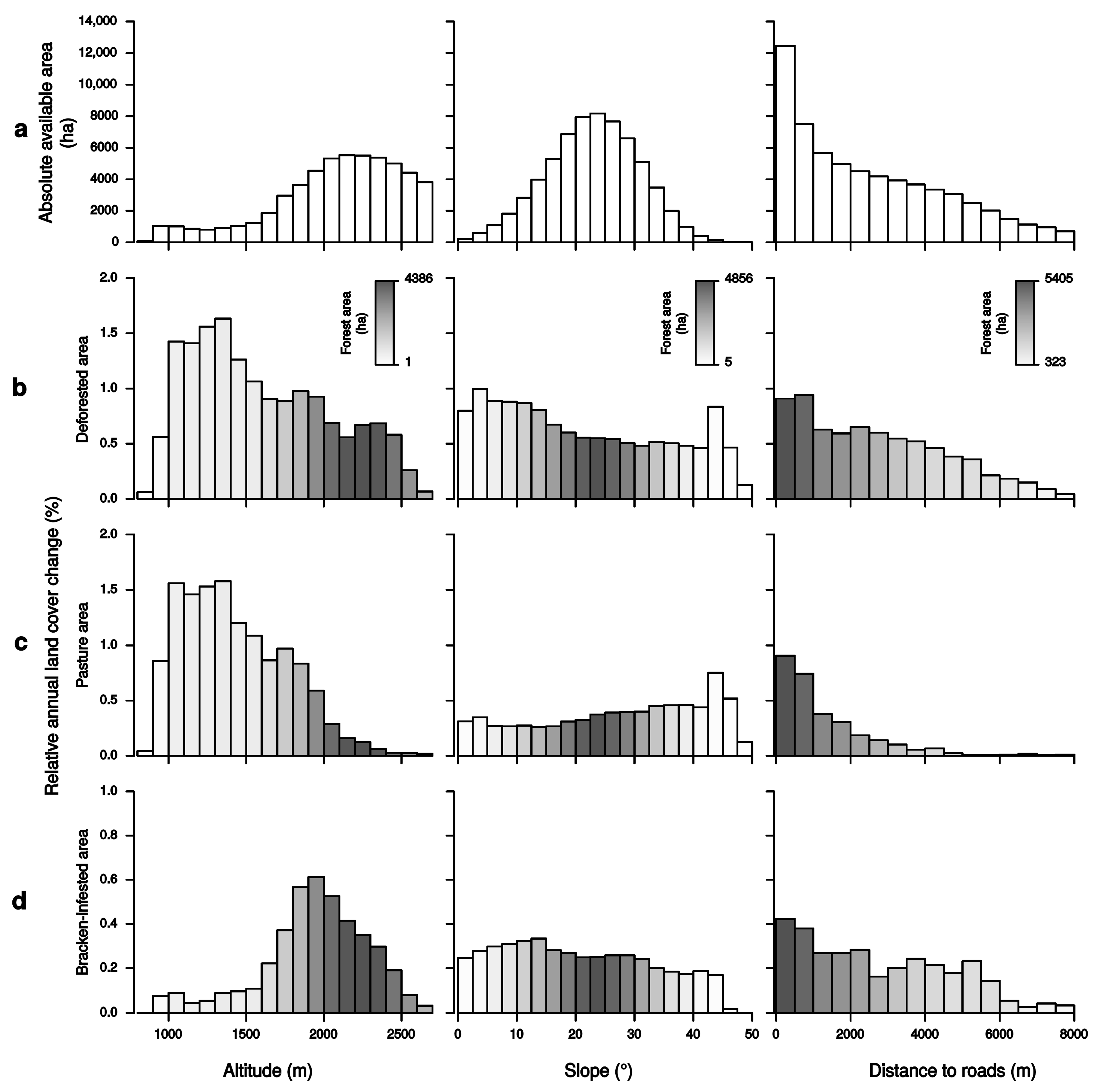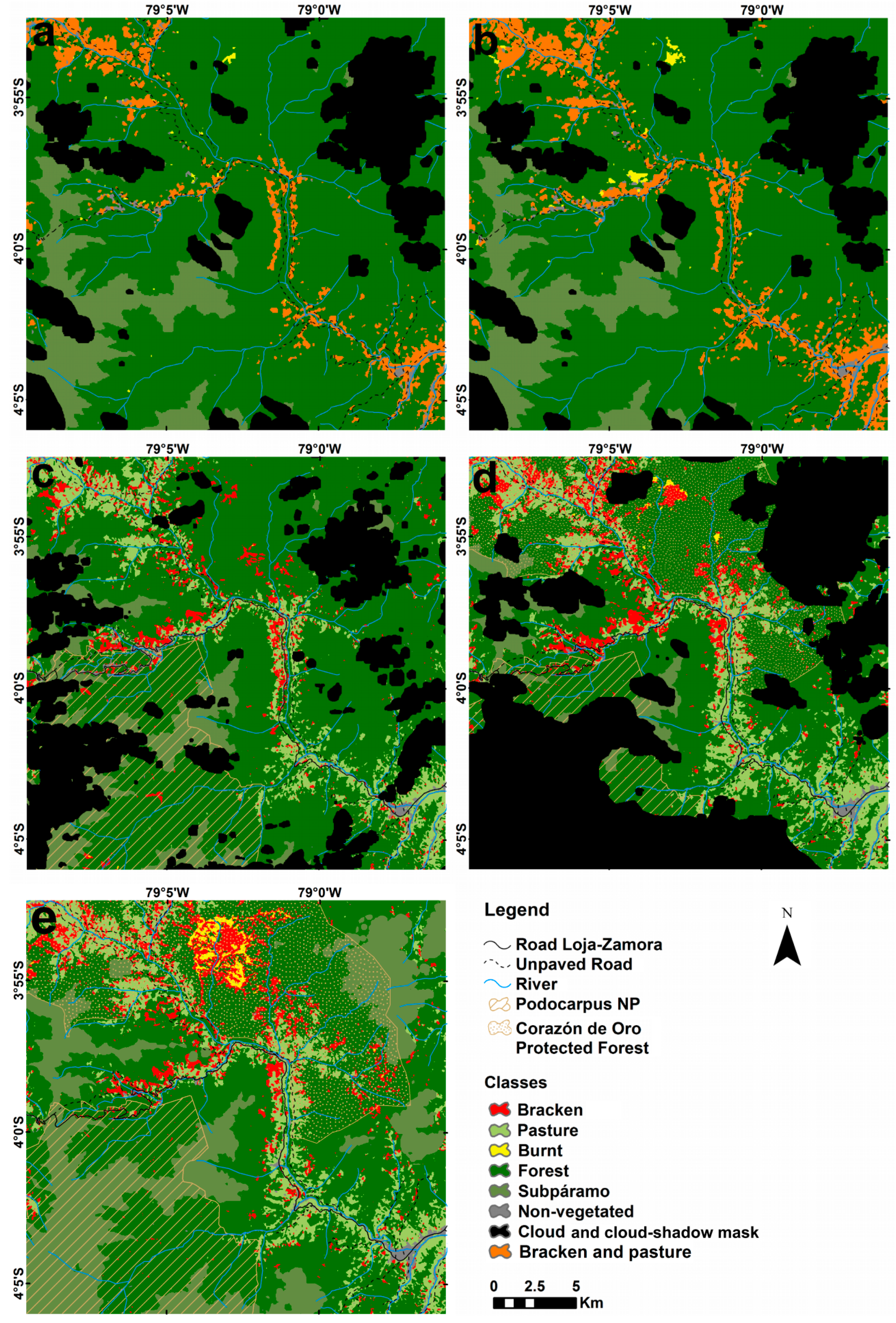 Despite the knowledge hitherto gained, a comprehensive approach to study land cover change in the SE-Ecuadorian Andes over an extended period considering fragmentation, fire–pasture–bracken dynamics, and the study of proximate and local and non-local underlying drivers is still lacking.