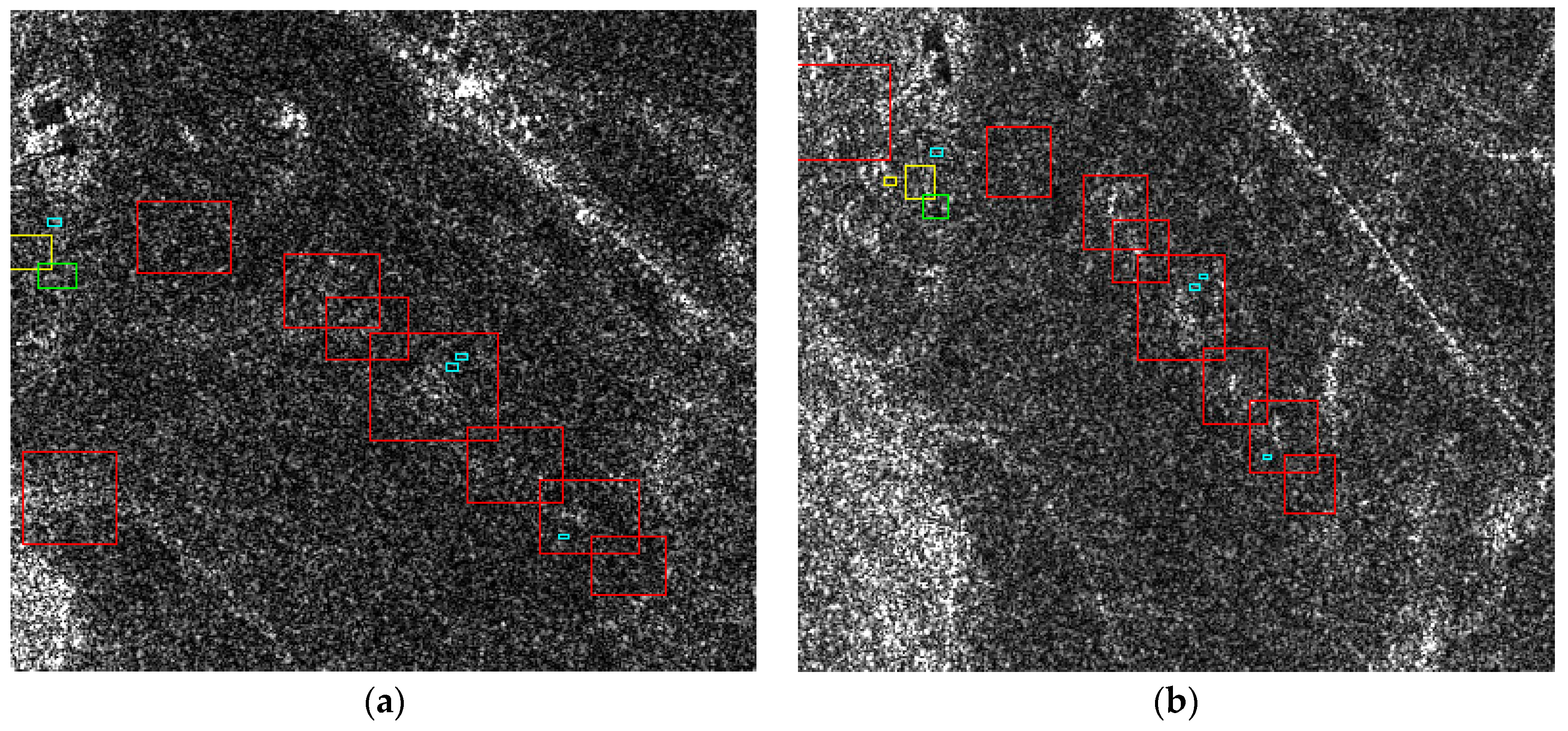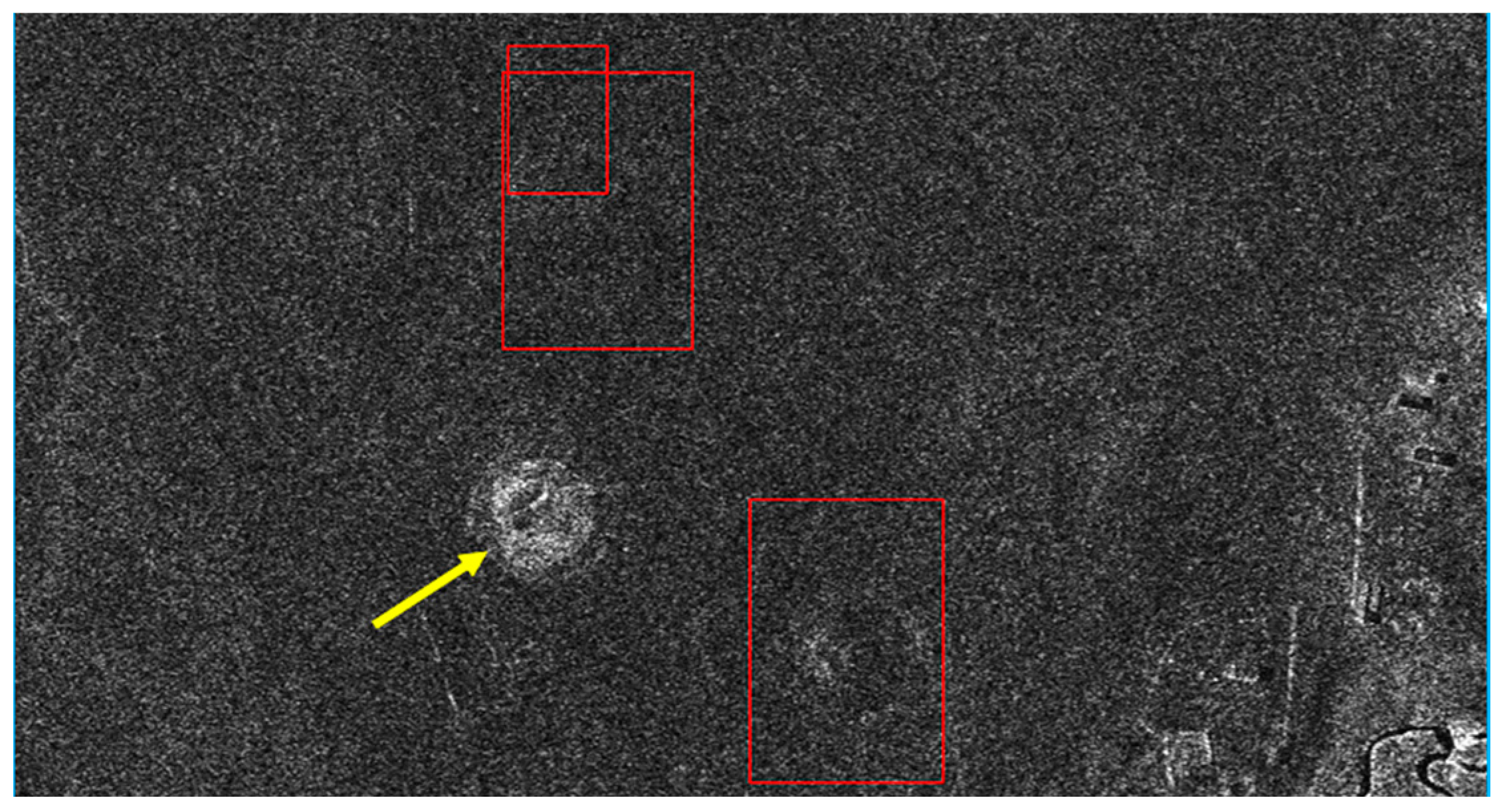 For each set of different object sizes, two examples were randomly selected and 200 × 200 pixel image subsets from different images were created. To keep the number of images limited for the test group, we selected three sample images: a TSX stripmap mode image from 5 June 2014, a TSX spotlight image from 14 July 2015, and a TSX staring spotlight image from 16 September 2015 (see Table 1).