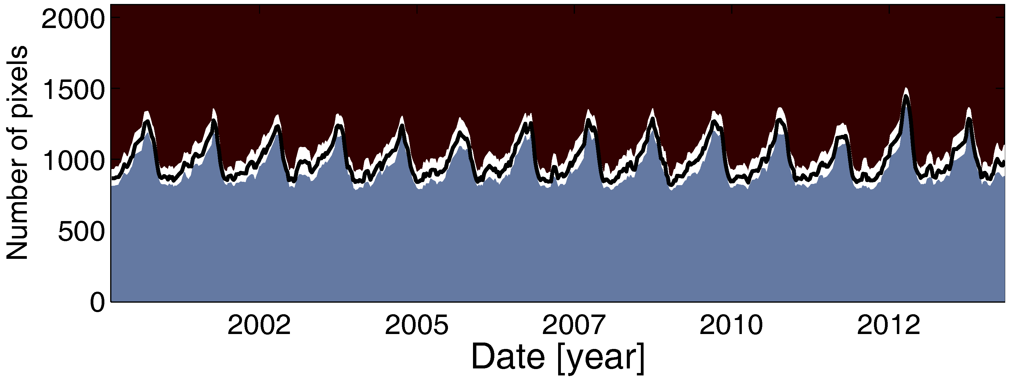 MODIS images are available with daily temporal resolution globally. Most of the preprocessing has been performed by the data provider. Especially, its high-level products (levels 3 and 4) are ready to use. In this study, we use MODIS MOD09Q1, which is the surface spectral reflectance corrected for atmospheric scattering or absorption. This product is provided in two spectral bands, red and near-infrared, with spatial resolution and 8-day temporal resolution. To derive the water mask, we use the near-infrared band. In each case study, we are dealing with nearly 700 images from 2000 to 2015; in total, we processed about 2300 images for this study.