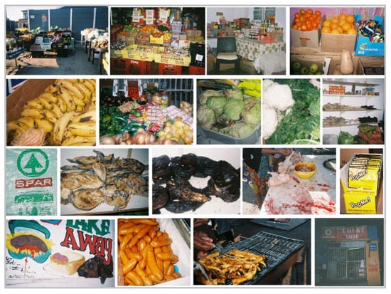- Freedman, D.A. Local food environments: They’re all stocked differently. Am. J. Comm. Psychol. 2009, 44, 382–393. [Google Scholar] [CrossRef]