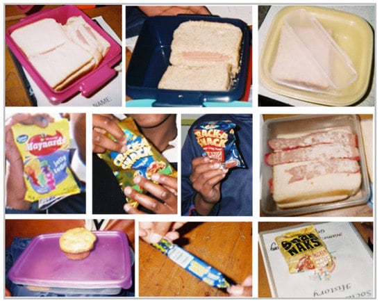 Photographs taken by grade 7 learners of their lunch boxes and snacks eaten at school.