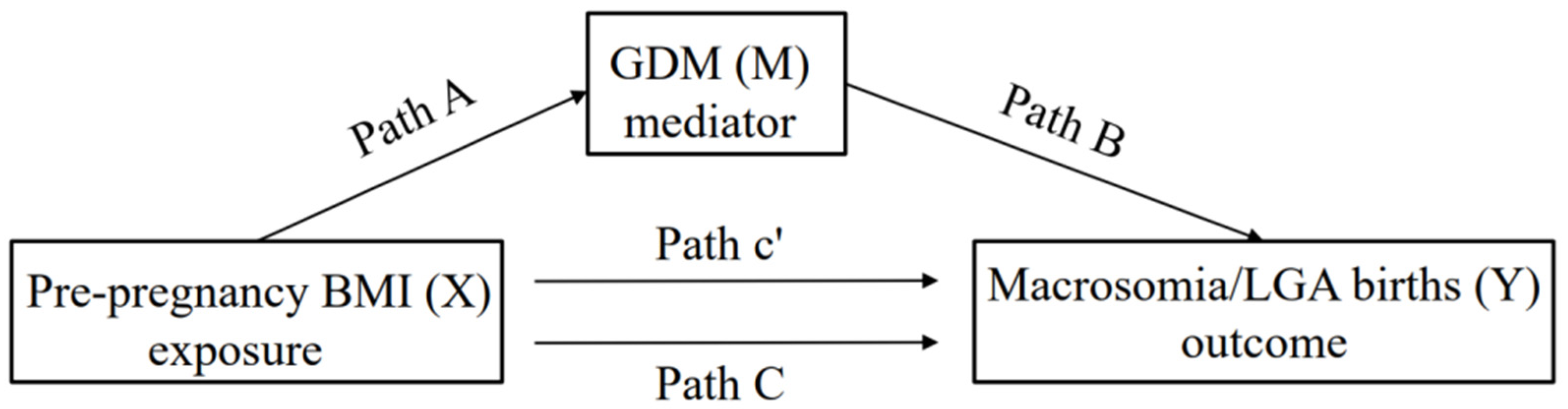 Song X, Shu J, Zhang S, Chen L, Diao J, Li J, Li Y, Wei J, Liu Y, Sun M, et al. Pre-Pregnancy Body Mass Index and Risk of Macrosomia and Large for Gestational Age Births with Gestational Diabetes Mellitus as a Mediator: A Prospective Cohort Study in Central China. Nutrients. 2022; 14(5):1072. https://doi.org/10.3390/nu14051072