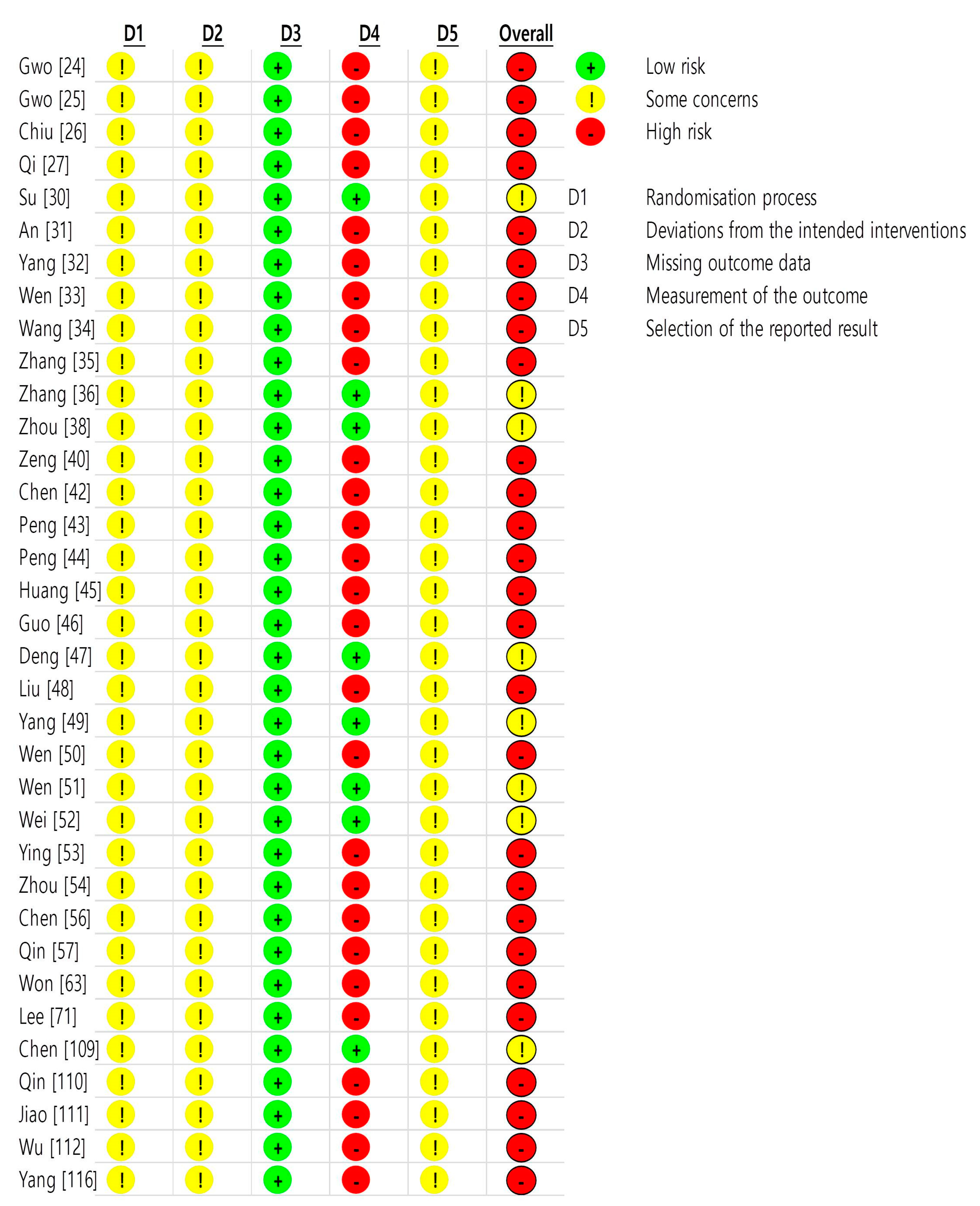| Deng [47] | rheumatoid arthritis | (A) 20 (B) 20 (C) 20 | NR | 60 days | (A) -bee venom injection -metrotrexate | (B) -metrotrexate (C) -strong metrotrexate | (1) Clinical symptoms (2) Blood test level | NR | NR |