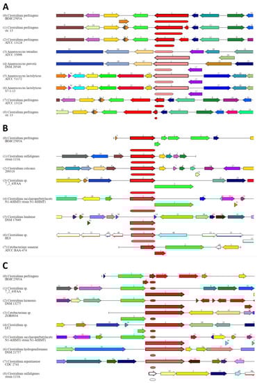 - Shimizu, T.; Ohtani, K.; Hirakawa, H.; Ohshima, K.; Yamashita, A.; Shiba, T.; Ogasawara, N.; Hattori, M.; Kuhara, S.; Hayashi, H. Complete genome sequence of Clostridium perfringens, an anaerobic flesh-eater. Proc. Natl. Acad. Sci. USA 2002, 99, 996–1001. [Google Scholar] [CrossRef]