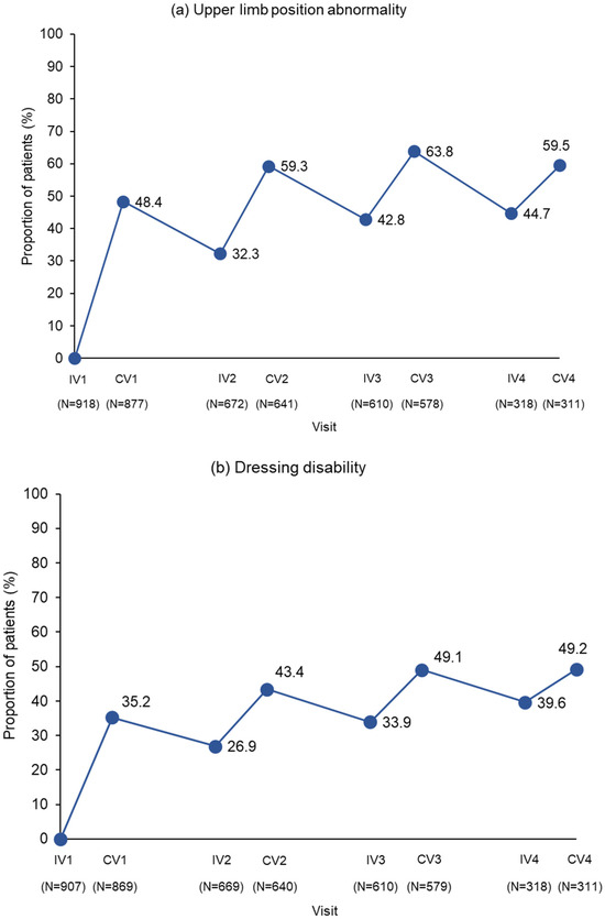 Four weeks after the fourth injection cycle, response rates in patients with limb position abnormality at baseline reached 59.5%. Response rates in patients with dressing disability reached 49.2%, and response rates in patients with hygiene-related disability reached 55.6%.