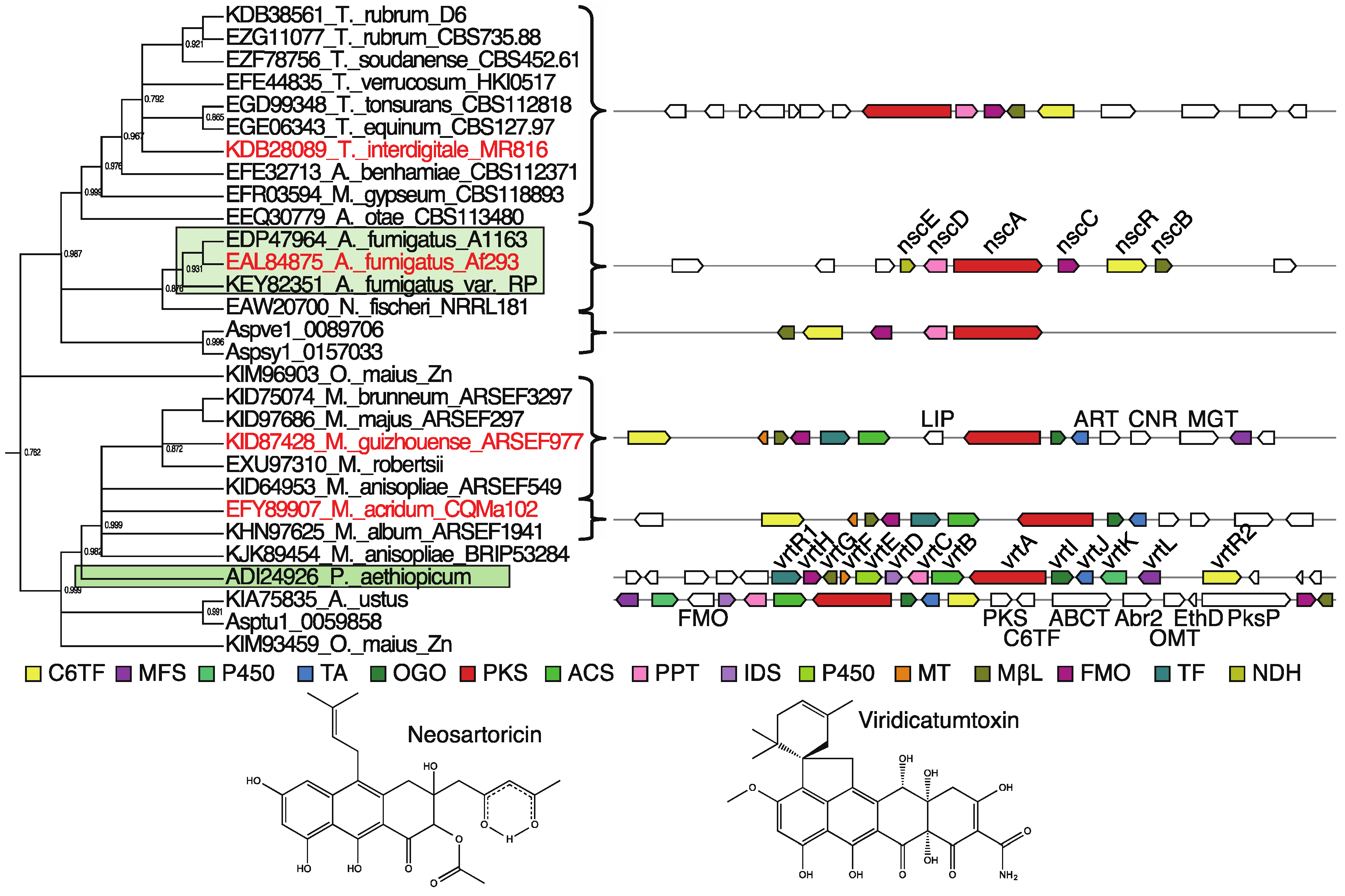 | EAL84875 | V2 | Neosartoricin, fumicycline | Characterized | [49,63] | |||