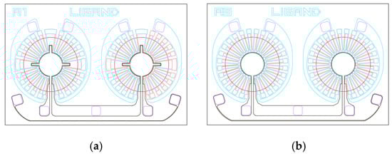 (a) Round heater with a loop at the corner (main design A1); (b) Round heater without loops (design A3).