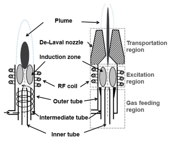 - Reed, T.B. Induction-coupled plasma torch. J. Appl. Phys. 1961, 32, 821–824. [Google Scholar] [CrossRef]