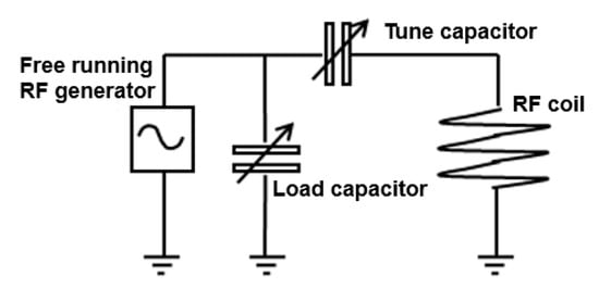 RF power was provided by a Comdel CV 2000 (Comdel Inc., Gloucester, UK) that is a free-running signal generator. The ~40 MHz signal was provided to the plasma through a fixed match RF network (Figure 8). The signal generator had the capability to supply up to 2000 W of RF power. However, the experiments were carried out for a maximum power of 800 W because the plasma of the torch became instable above this value. The cause was the natural E-H mode transition of the plasma. In any case, the lack of control was thought to be due to the presence of the RTD sensors and wires located in the coil fitting (Figure 6).