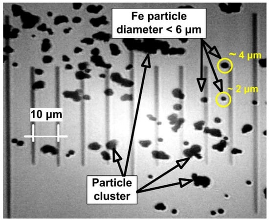 Multi-domain soft Fe particles (Carl Roth GmbH, Karlsruhe, Germany) with a density of ρ =7.86 g/cm3 and size of 4–6 μm were utilized in this investigation to mimic the magnetic carrier (same as in our previous study []). As a result, the magnetic field needs of the experimental setup are significantly reduced by their magnetic moments, which are approximately 106 ÷ 107 times larger than those of typical drug-carrying iron oxide nanocomposites.