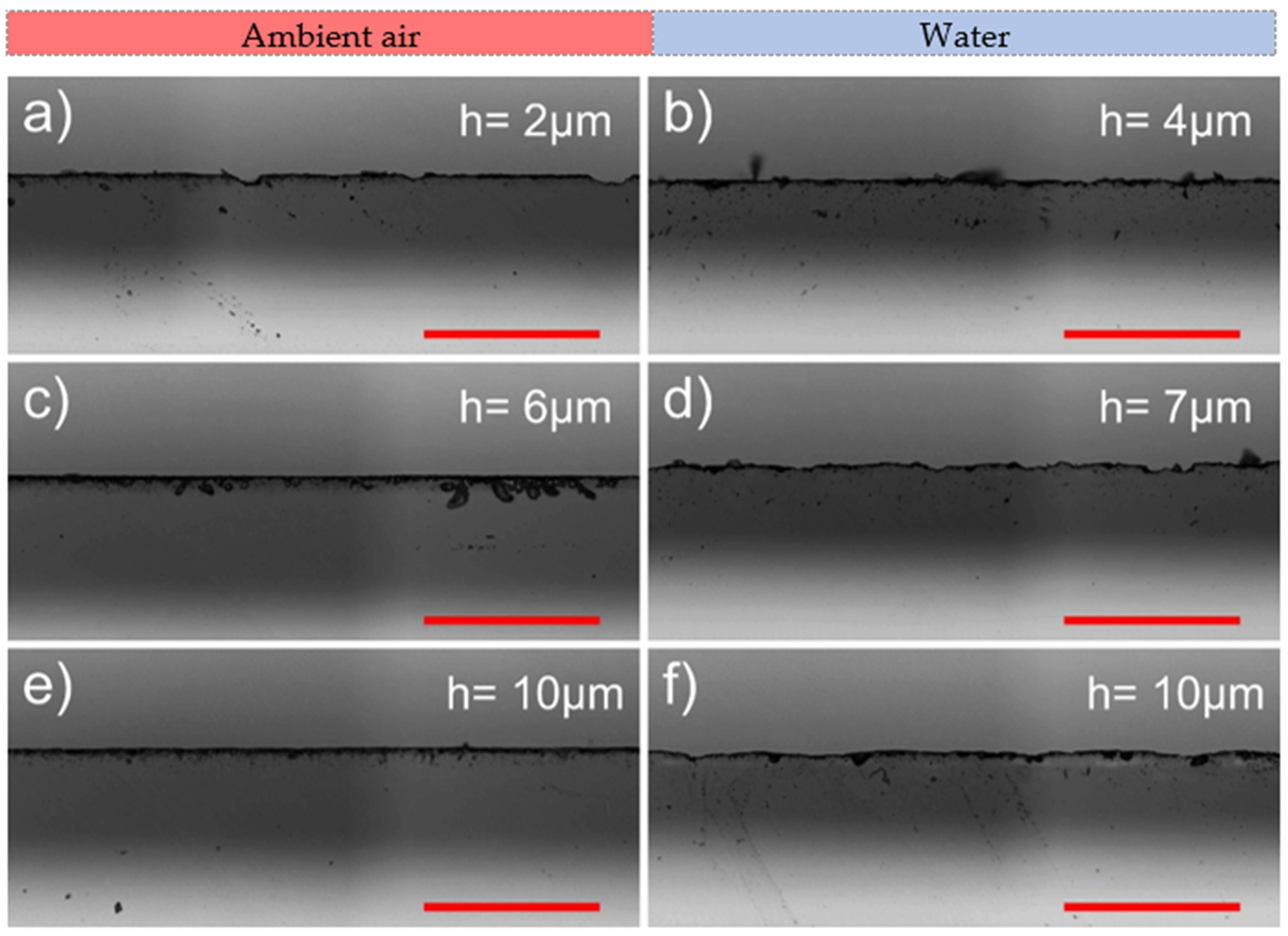 - Zhou, J.; Huang, Y.X.; Zhao, Y.W.; Jiao, H.; Liu, Q.Y.; Long, Y.H. Study on water-assisted laser ablation mechanism based on water layer characteristics. Opt. Commun. 2019, 450, 112–121. [Google Scholar] [CrossRef]