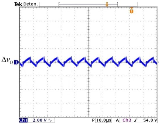 Experimental voltage ripple of output voltage (y-axis: 2 V/div) (x-axis: time 10 µs/div).