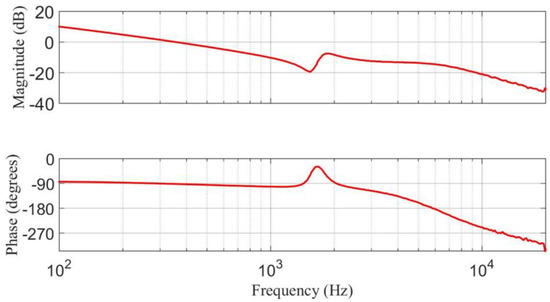 When the voltage loop is closed, it is crucial to guarantee an adequate gain margin, phase margin, and crossover slope at 0 dB of the voltage loop gain. Using the Frequency Response Analyzer 300, the experimental frequency response of the voltage loop gain is obtained and depicted in Figure 17. It exhibits a crossover slope at 0 dB of about 20 dB/dec, a phase margin of 90 degrees, and a gain margin of 8 dB. Thus, robust stability is achieved in the switching regulator.