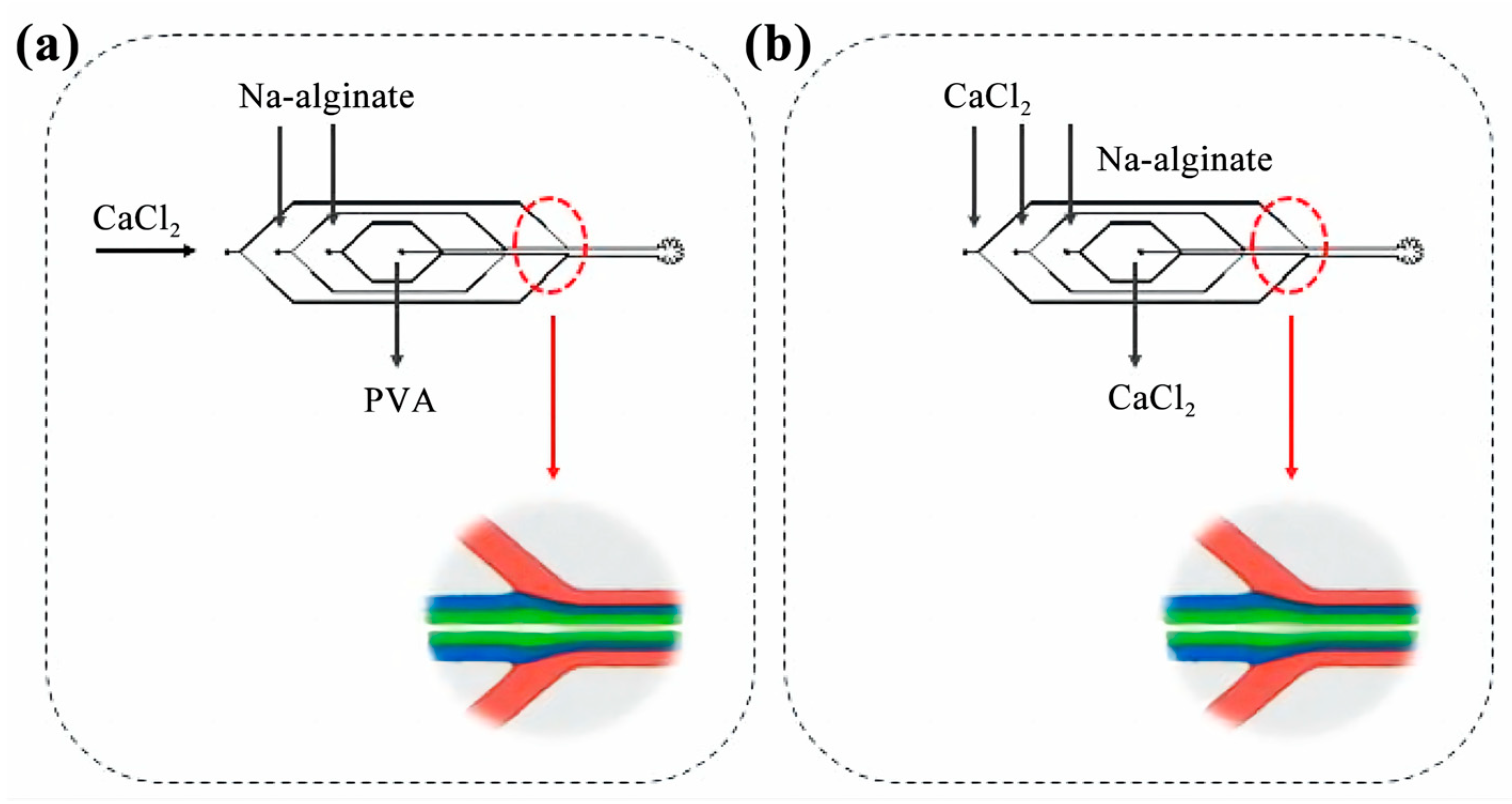- Nishimura, K.; Morimoto, Y.; Mori, N.; Takeuchi, S. Formation of Branched and Chained Alginate Microfibers Using Theta-Glass Capillaries. Micromachines 2018, 9, 303. [Google Scholar] [CrossRef]