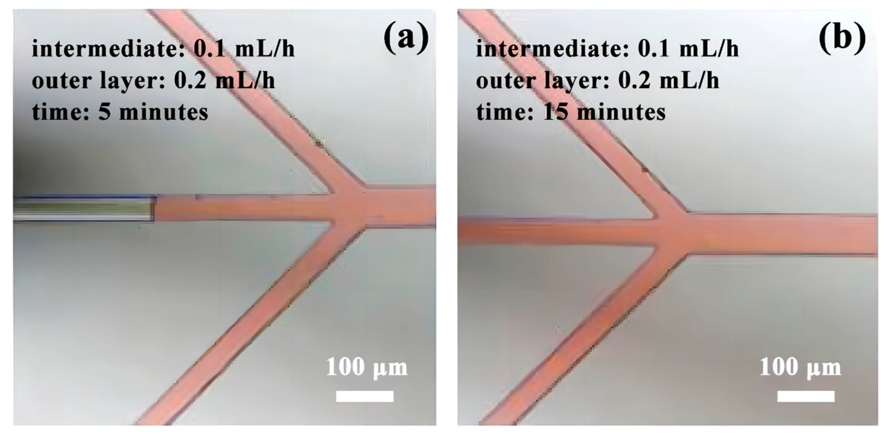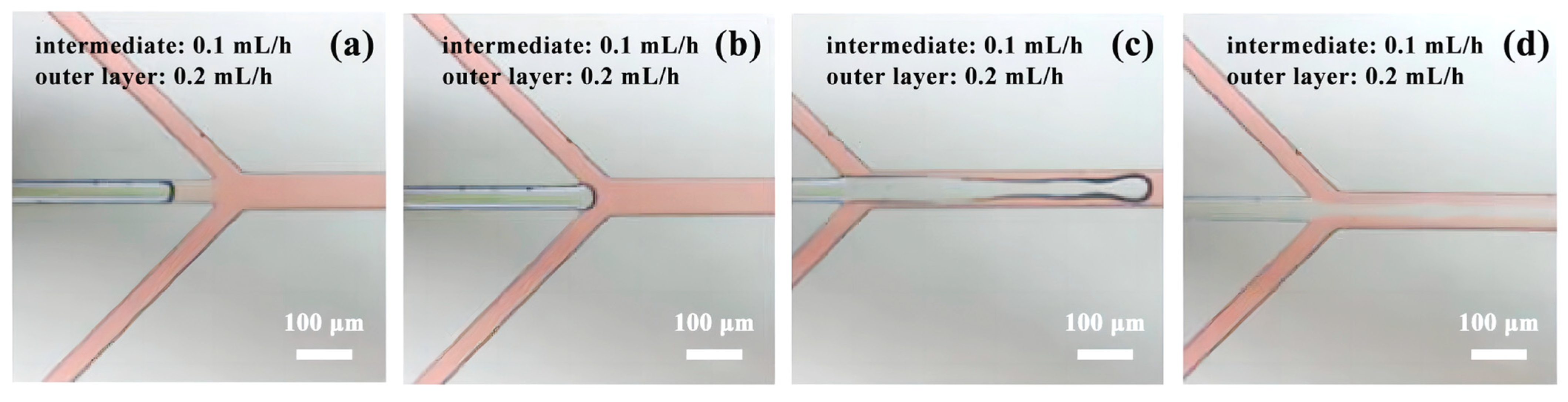 - Chaurasia, A.S.; Sajjadi, S. Transformable bubble-filled alginate microfibers via vertical microfluidics. Lab A Chip 2019, 19, 851–863. [Google Scholar] [CrossRef]