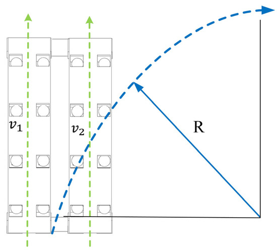The robot achieves omnidirectional motion through the coordinated control of its three driving units, as shown in Figure 7. The direction vectors of each unit in a Cartesian coordinate system, with the robot’s center as the reference point, are defined as follows: