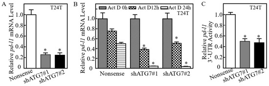 2.2. ATG7 Promoted pd-l1 mRNA Stability by Regulating Its 3′-UTR Activity