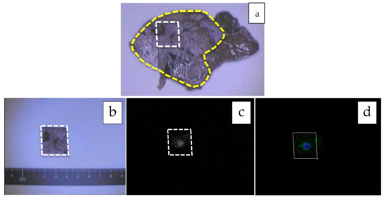 Since the number of subjects thus far has been small, no clear association has been noted between the fluorescence pattern and pathology. However, it is important to note that all patients with HB in our series underwent sessions of chemotherapy before resection, whereas patients with HCC usually do not. Therefore, all of the primary lesions subjected to the studies were evaluated post-chemotherapy, and a certain percentage of necrotic and fibrotic areas were observed macroscopically. Such areas generally appeared non-fluorescent and were therefore described as an uneven fluorescence pattern in vivo, as shown in Figure 1a,b and Figure 2a,b. Interestingly, HB with teratoid features also demonstrated uneven fluorescence both in vivo and ex vivo, with fluorescence being observed in only well-differentiated HB lesions, as shown in Figure 3a–g. In addition, we experienced cases of metastasectomy for HB in a transplanted liver graft, with multiple small lesions visualized as a diffuse pattern, as shown in Figure 4a–d [43].