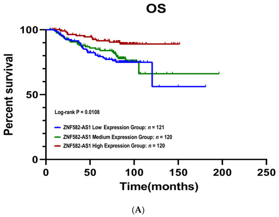 3.2. ZNF582-AS1 Expression and Patient Characteristics