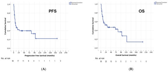PFS (A) and OS (B) in 50 patients who completed HCT-ASCT.