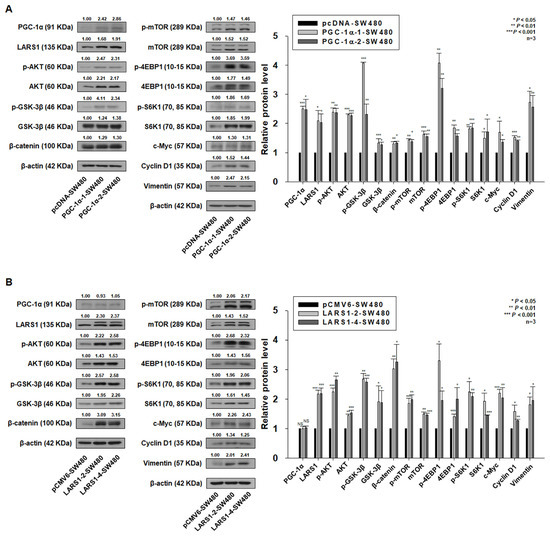 To the best of our knowledge, this is the first report showing that PGC-1α regulates cell proliferation and invasion through modulation of LARS1 expression. Further studies evaluating the clinical significance of the PGC-1α/LARS1/AKT/GSK-3β/β-catenin axis in human colorectal cancer patients and therapeutic potentials of several LARS1 inhibitors in PGC-1α-overexpressing colorectal cancer are needed.