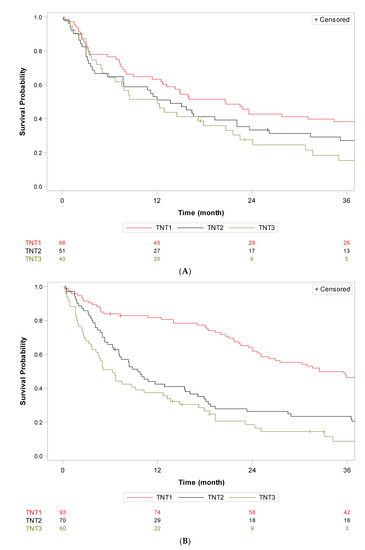 Overall survival (OS) in the metastatic setting was defined as the interval between the diagnosis of metastatic disease (at diagnosis or relapse) and the time of death, from any cause. When death was not observed, OS was censored at the date of last patient contact. Time to next treatment (TNT) was defined as the time from the systemic treatment onset to the next treatment or death due to any cause, whichever came first. When neither death nor new systemic therapy was observed, TNT was censored at the date of last patient contact. A change in dosing of the same molecule made without changing the type of molecule was not considered a next treatment. This study was approved by institutional review boards.