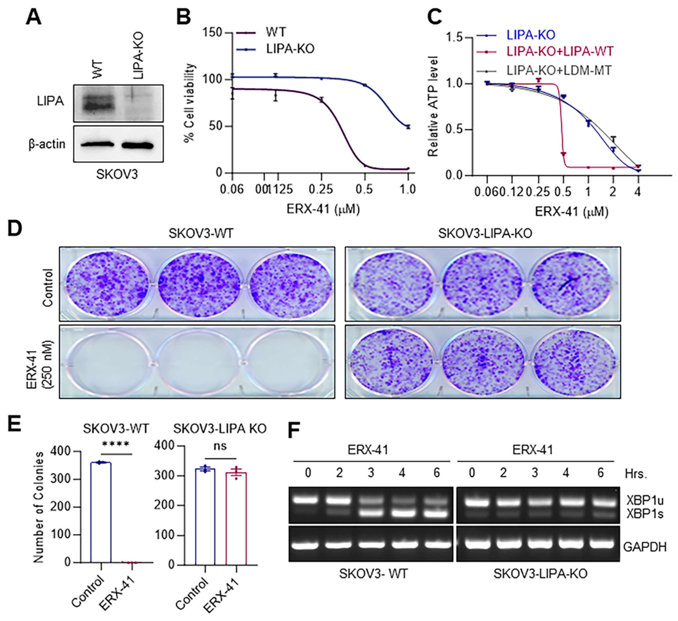 3.4. ERX-41-Mediated Effects Require LIPA in OCa Cells