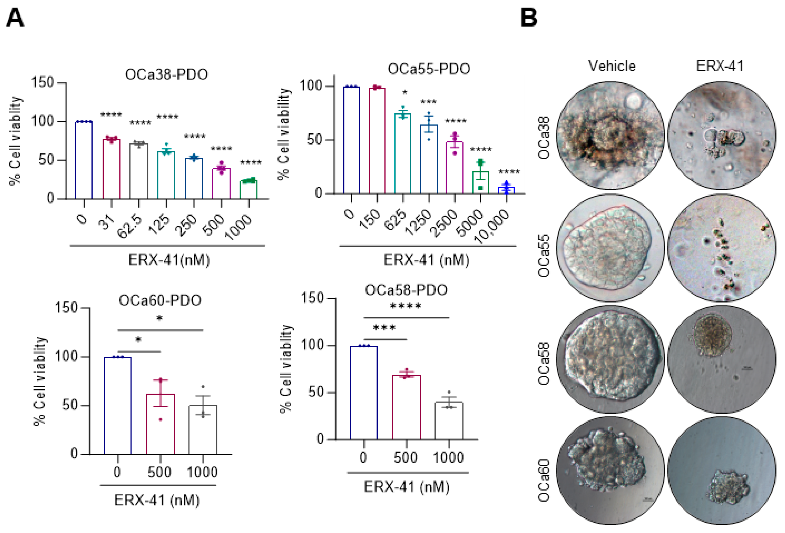 3.5. ERX-41 Reduced Cell Viability of Patient-Derived OCa Organoids