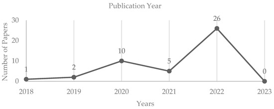 The number of papers per year published included in the literature review.