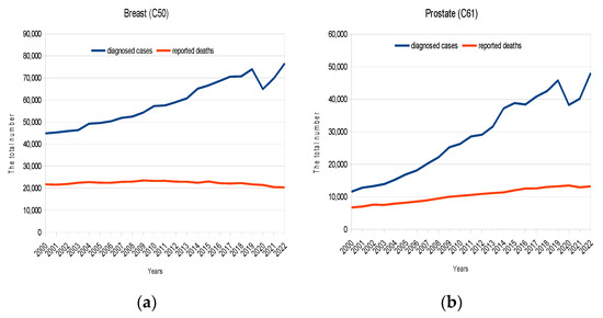 We collected data on breast, prostate, renal, and thyroid cancer incidence and mortality from the Russian National Cancer Registry from 2000 to 2022 [20]. At the time of writing, the 2022 report on morbidity and mortality was finalized and published [21]. The absolute number of new cases diagnosed each year, along with the reported deaths, were plotted on charts using LibreOffice software (version 7.3.7.2) [22].