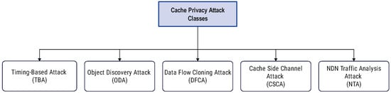 - Dogruluk, E.; Costa, A.; Macedo, J. Identifying previously requested content by side-channel timing attack in NDN. In Communications in Computer and Information Science; Springer: Berlin/Heidelberg, Germany, 2018; pp. 33–46. [Google Scholar] [CrossRef]
