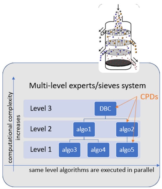 Many descriptors for the first layer can be found in [,,]. We can apply these descriptors according to a decrease in complexity (and an increase in speed) and calculate some descriptors in parallel. The calculation and comparison of different descriptors can be separated into several levels (Figure 1).