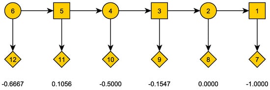Game tree example with values of terminal vertices.