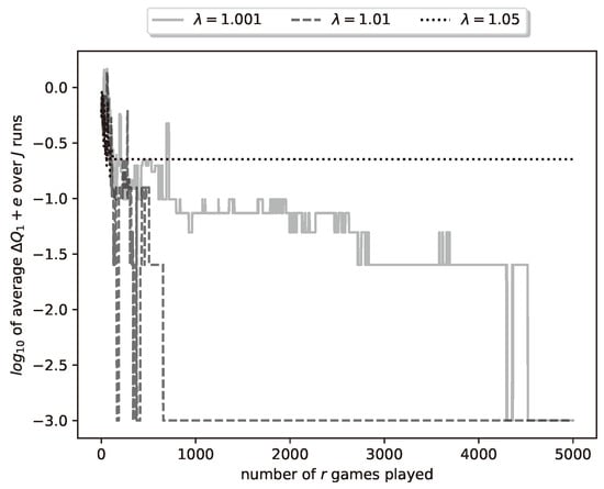 - Finally, for , the average error never reached zero; in fact, 3 out of 10 runs converged to nonzero-error estimates, i.e., to non-optimal strategies.